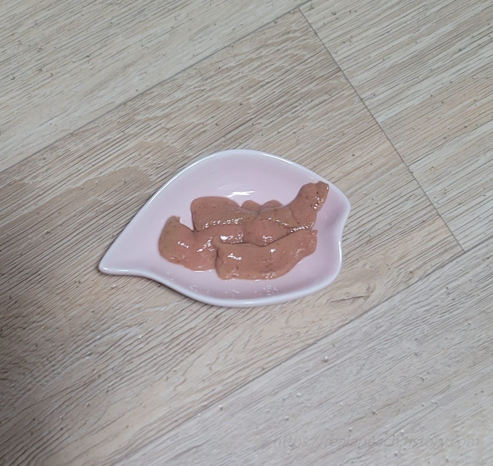 1. 조그만 접시 위에 츄르를 얇게 깐다.