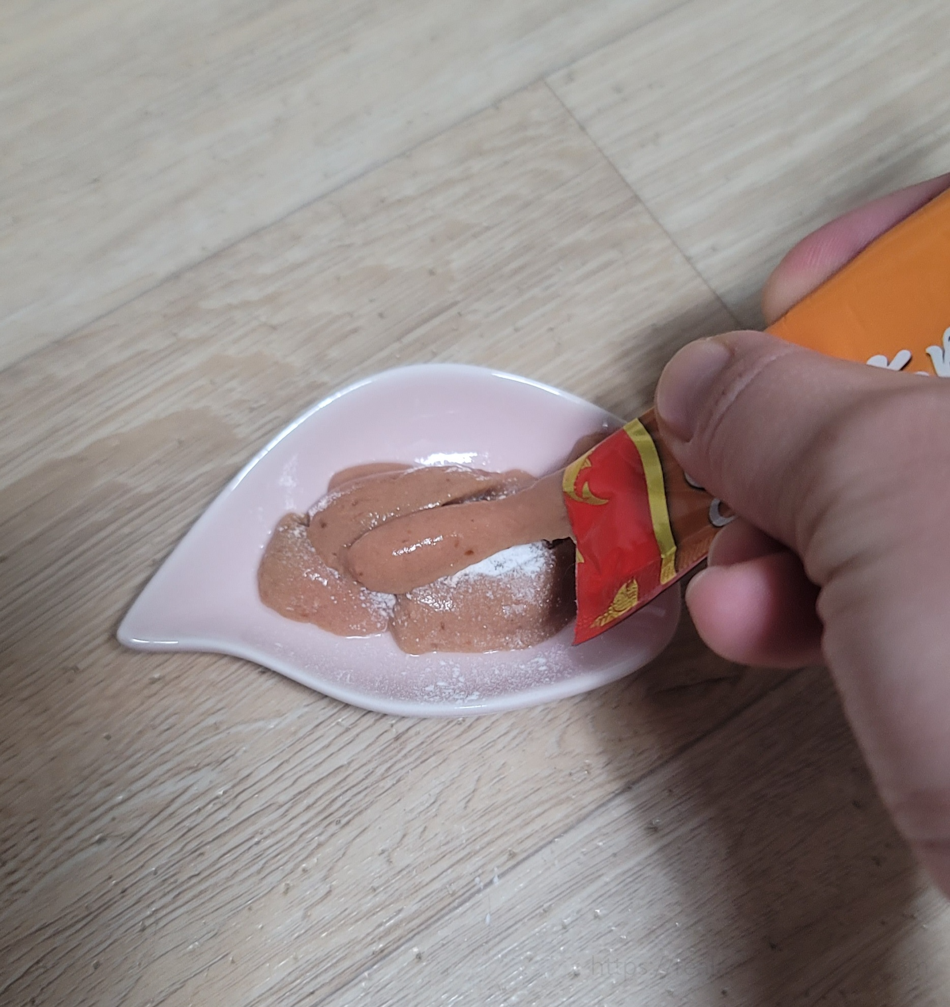 이때 주의점, 츄르를 다 짜지말고 조금 남겨놓을 것