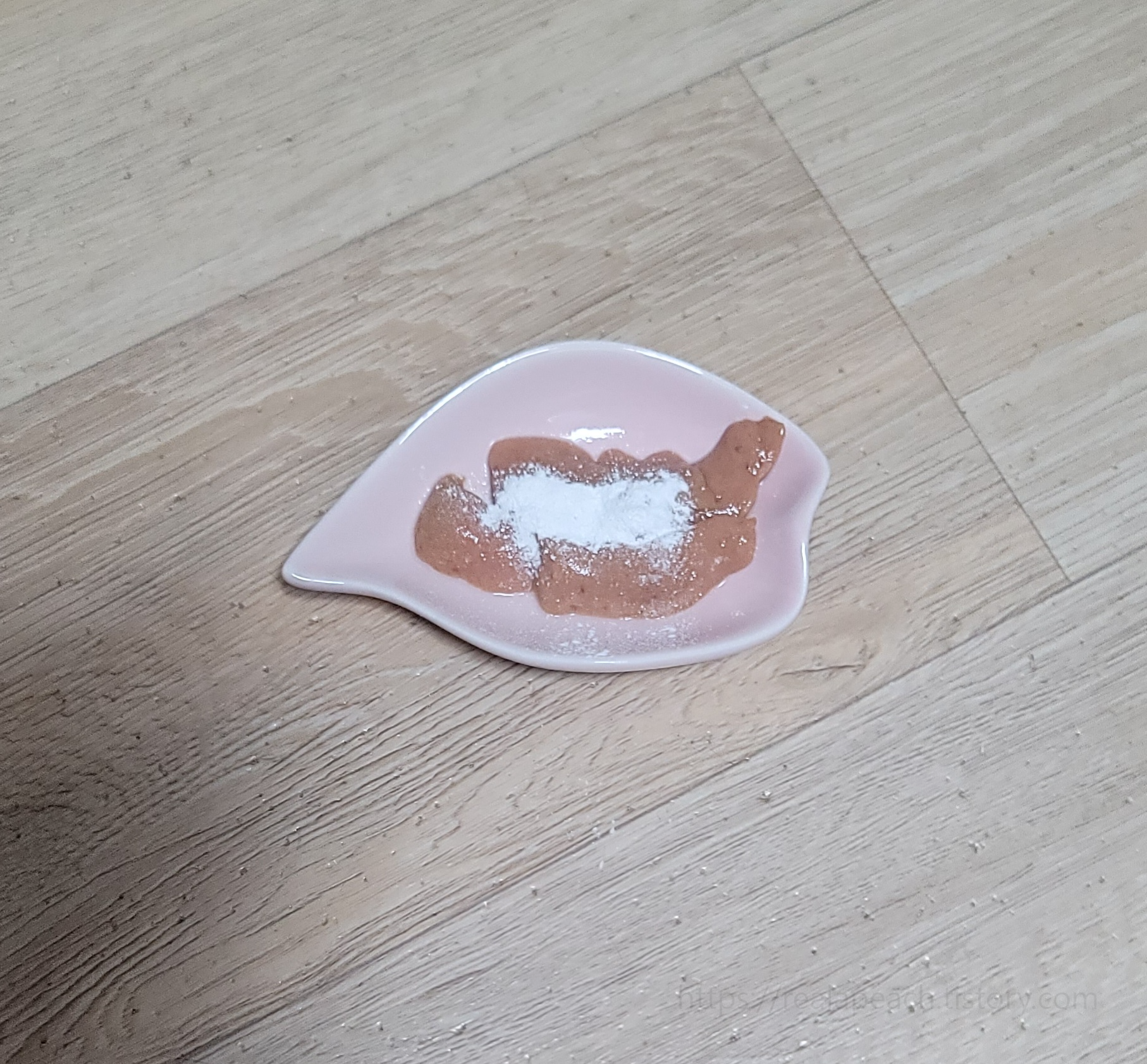 4. 젓가락으로 흰 가루가 보이지않을 때까지 꼼꼼히 섞는다.